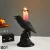• Realistic black crow perched on a glowing candlestick for an eerie look.